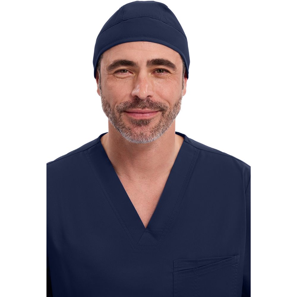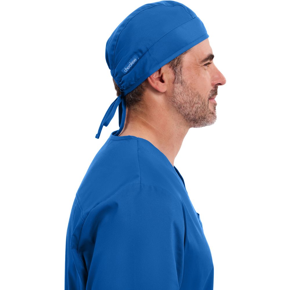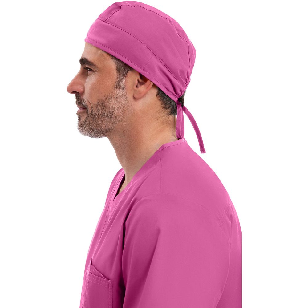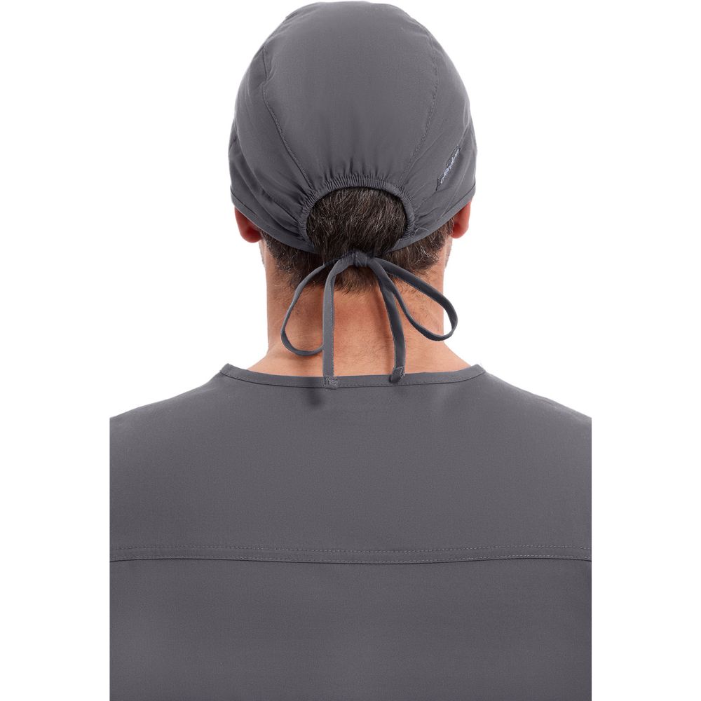 This adjustable, tie-back scrubs hat features an interior terry cloth sweatband and contoured seaming with back elastic for better fit. Unisex fit.