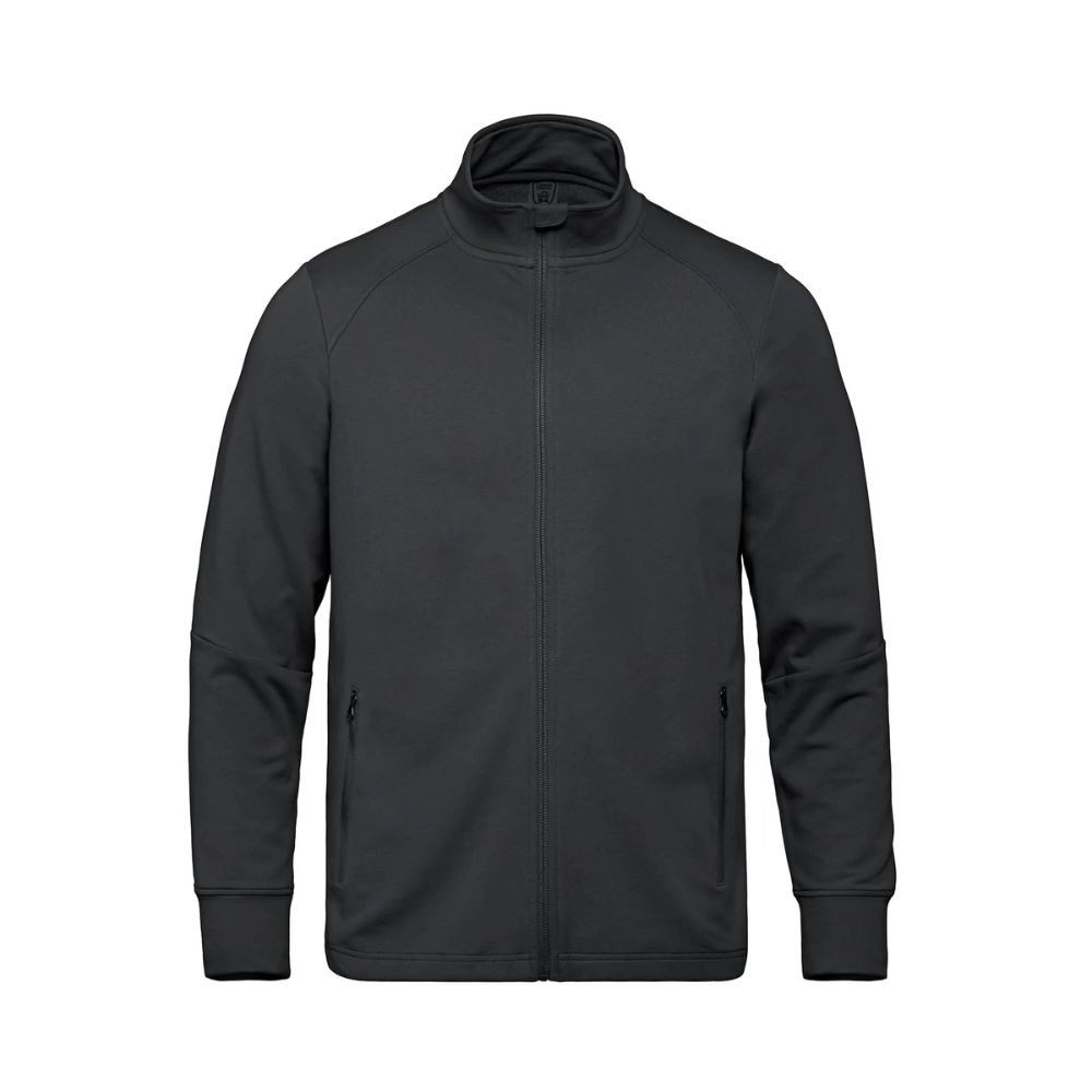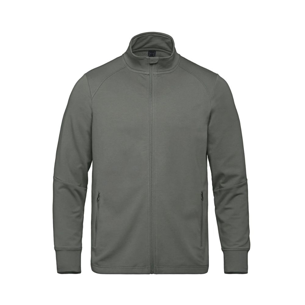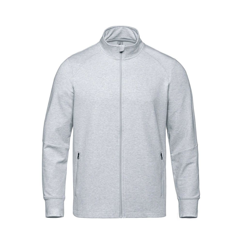 275 GSM – 8.1 oz/yd2 – 13.5 oz/lin. yd. 64% cotton, 30% recycled polyester, 6% spandex. Stretch french terry with wicking and anti-bacterial finishes. YKK front zipper and lower pocket zippers. Front and back shoulder yoke seam detail. Self-fabric sleeve cuff. Seam detail on sleeve at elbow. Knit back neck tape, tear-away label. Made in Cambodia