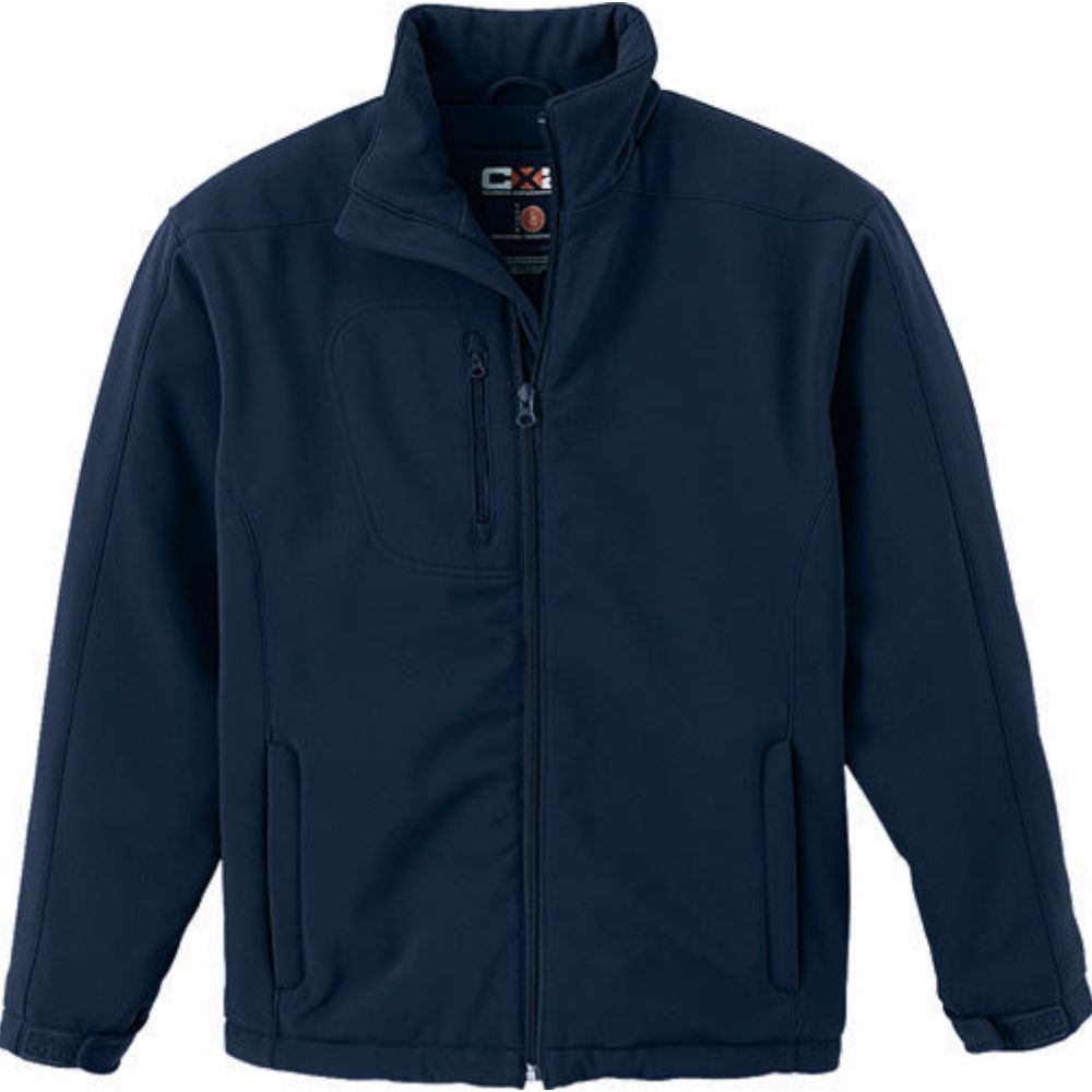 320 gsm – 9.4 oz./yd2 – 16 oz./lin. yd 96% polyester, 4% spandex softshell bonded with micro fleece 8000 mm waterproof rating, 800 gsm breathability rating, wind resistant and water repellent finish. Insulation: 100 gsm body, 80 gsm sleeves 100% polyester. Polyester taffeta lining with tone-on-tone CX2 print in body and sleeves. Active stretch. Two lower front zippered pockets. Adjustable tab closure on cuffs.