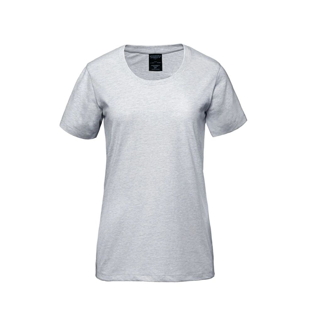 160 GSM – 4.7oz/yd2 – 8 oz./lin. yd. Solids – 100% certified organic cotton jersey, Heathers – 80% certified organic cotton, 20% polyester jersey. 28 single combed compacted yarn. Rib knit neckline with spandex for shape retention. Jersey knit back neck tape. Tear-away label. Side seamed. Scoop neck for ladies and crewneck for adult equivalent style S05500.