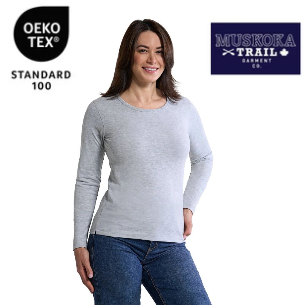 160 gsm – 4.7 oz./yd² – 8 oz./lin. yd 50% cotton, 50% recycled polyester carbon peached jersey. Soft hand feel. Taped neck seam, Split side seams, and Rib knit binding at neckline for finer finishing details.