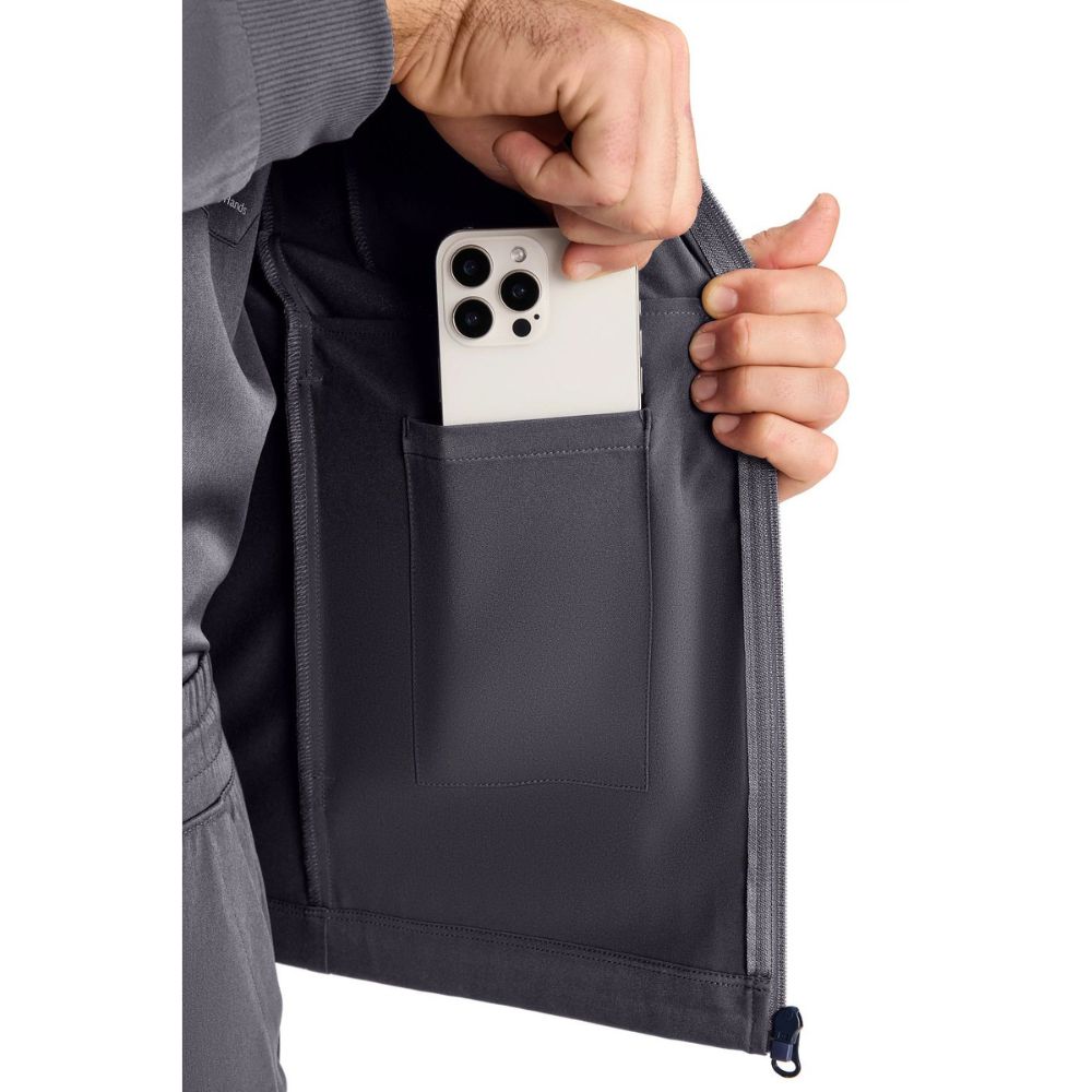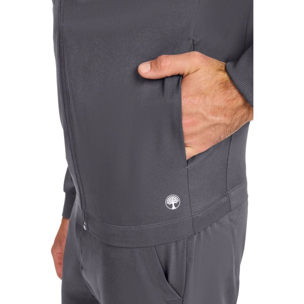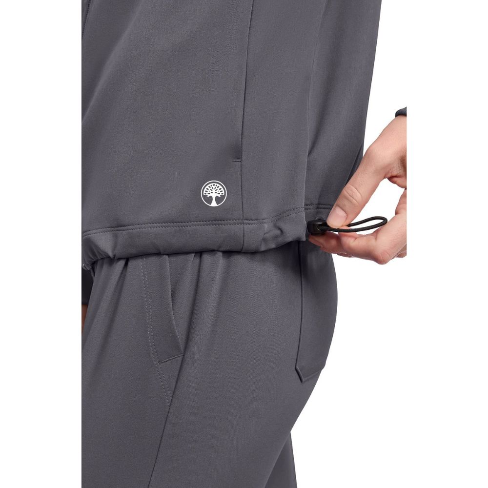 A sporty staple that shifts gears like a pro, this stylish stretch jacket layers smoothly over scrubs or everyday tees. Moisture-wicking fabric keeps freshness at the forefront, while providing a warm layer in cooler temps.