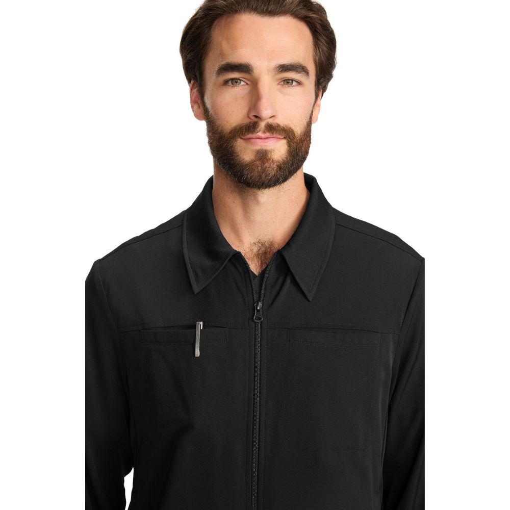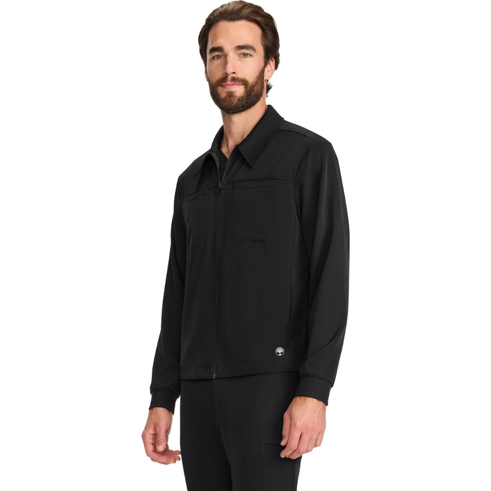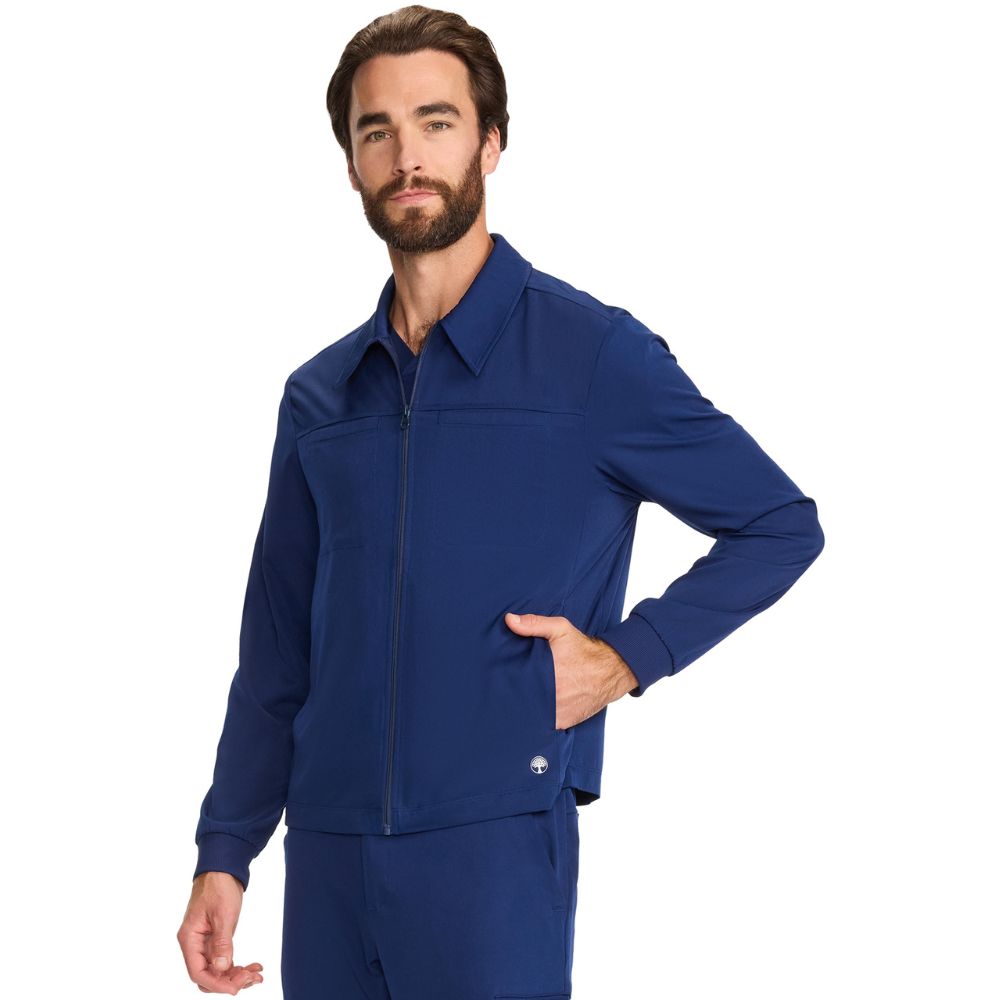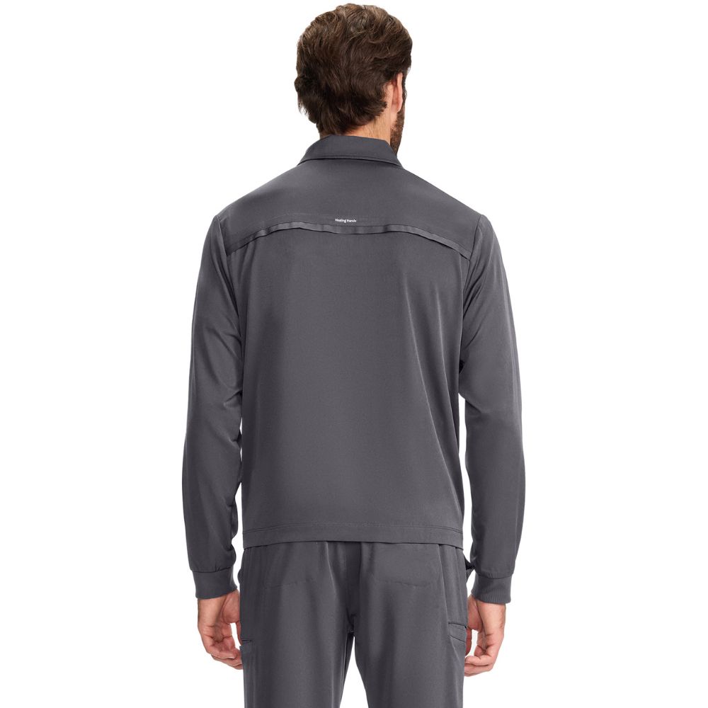 A sporty staple that shifts gears like a pro, this stylish stretch jacket layers smoothly over scrubs or everyday tees. Moisture-wicking fabric keeps freshness at the forefront, while providing a warm layer in cooler temps.