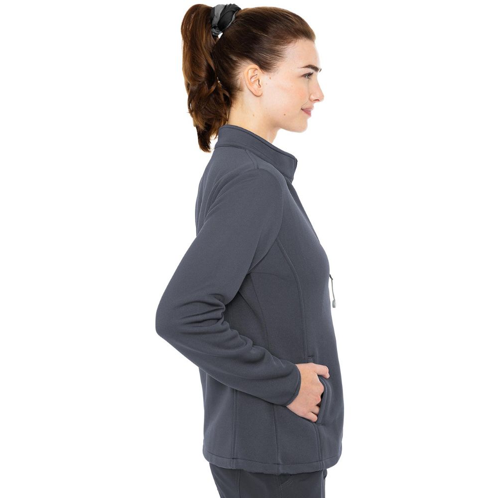 Designed to keep you warm on those cold office days when you need an extra layer over your scrubs. Complete with hidden pockets inside and a nifty hair tie zipper pull, this jacket has everything you need. Length: 26 in.